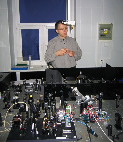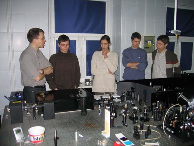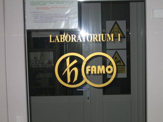 Zdjęcia zrobione podczas zwiedzanie Krajowego Laboratorium Fizyki Atomowej, Molekularnej i Optycznej (FAMO LAB), przez uczestników olimpiady: