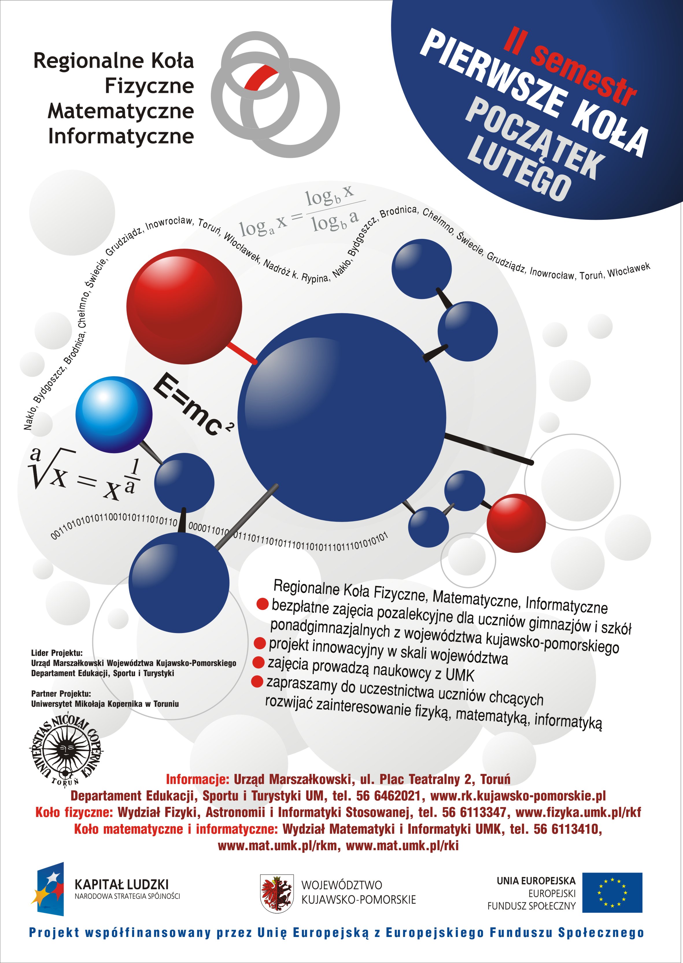 Plakat Regionalnych Kół Fizycznych, Matematycznych, Informatycznych z II semestru roku 2009/2010.